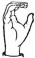 На ћирилици написано КОСТА КЛЕПАЦ састоји се из 11 слова [?]. Исписано ћириличном једноручном азбуком за глувонеме: